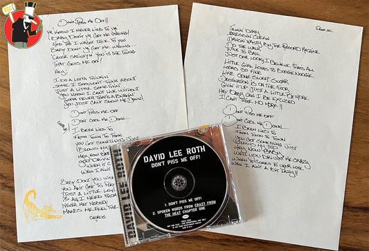 SOLD! David Lee Roth Hand Written Lyrics "Don't Piss Me Off" Rare One of Kind 1997 w/ CD